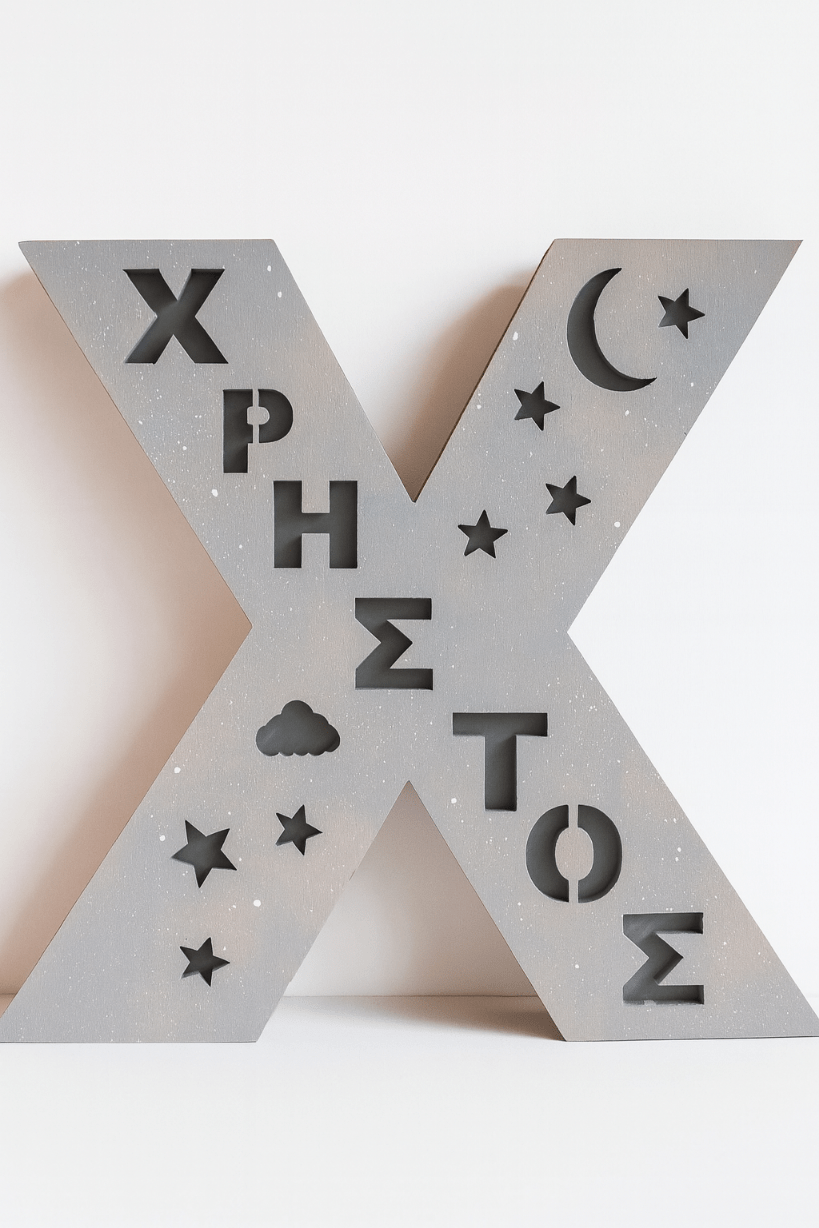 Δώστε μοναδικό χαρακτήρα στο παιδικό δωμάτιο με αυτό το εντυπωσιακό φωτιστικό σε σχήμα γράμματος Χ, διακοσμημένο με το όνομα ΧΡΗΣΤΟΣ.