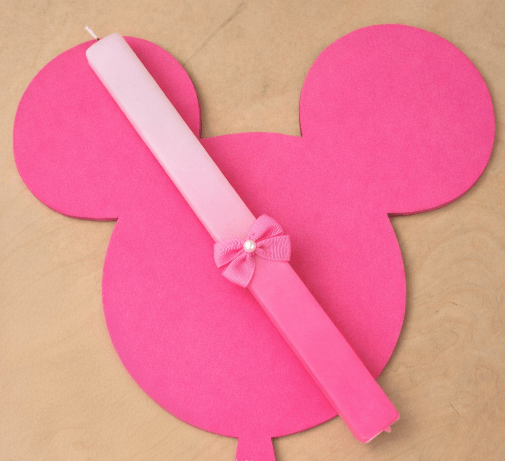 Ρομαντική και κομψή διακοσμητική λαμπάδα σε απαλή ροζ απόχρωση, διακοσμημένη με ένα χαριτωμένο φιόγκο και λεπτομέρεια πέρλας στο κέντρο. Συνοδεύεται από ιδιαίτερη βάση σε σχήμα που θυμίζει αγαπημένη παιδική φιγούρα, προσθέτοντας μία παιχνιδιάρικη αλλά και κομψή αισθητική.