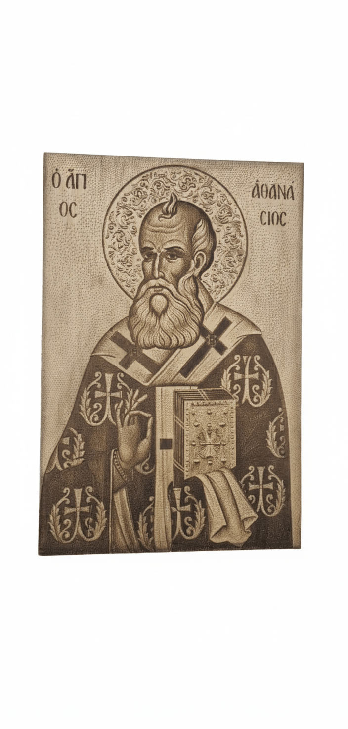 Η ξύλινη εικόνα του Αγίου Αθανασίου είναι μια ιδιαίτερη χειροποίητη δημιουργία, κατασκευασμένη από φυσικό ξύλο με προσεγμένη λεπτομέρεια. Ο κλασικός εκκλησιαστικός χαρακτήρας της την καθιστά ιδανική για το σπίτι, το γραφείο ή επαγγελματικούς και εκκλησιαστικούς χώρους.
