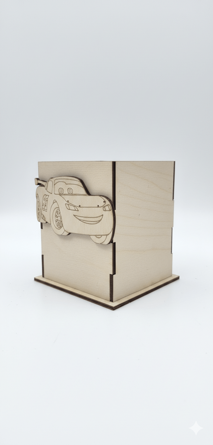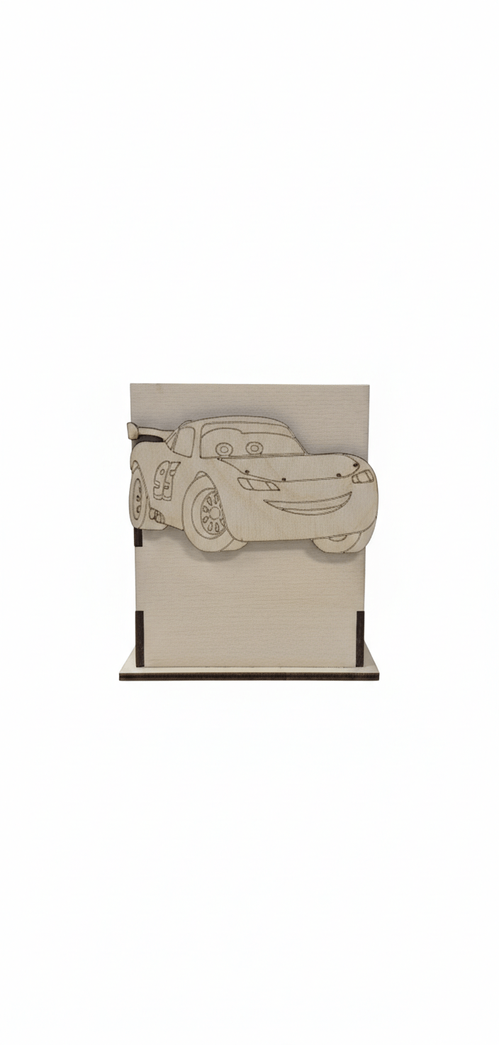 Ξύλινη παιδική μολυβοθήκη με σχέδιο αυτοκίνητο και δυνατότητα προσθήκης ονόματος. Ιδανική για την οργάνωση του παιδικού γραφείου με πρακτικό και χαρούμενο τρόπο.