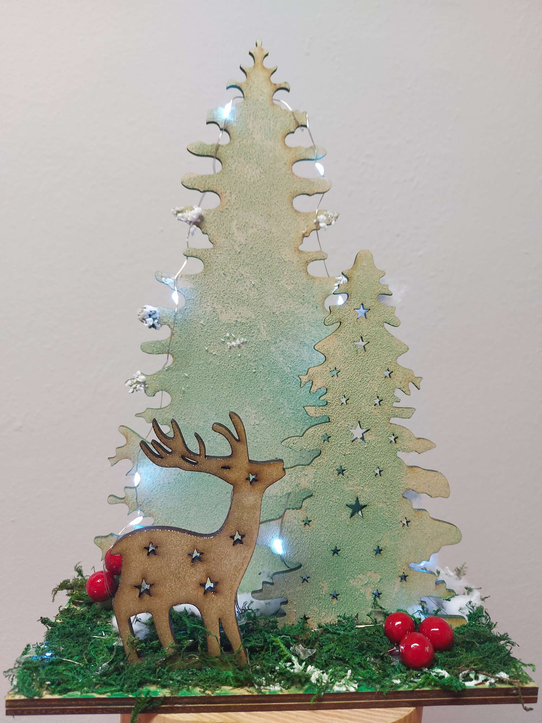 Ένα κομψό ξύλινο χριστουγεννιάτικο δεντράκι με λαμπάκια που προσθέτει ζεστασιά και γιορτινή ατμόσφαιρα σε κάθε χώρο. Κατασκευασμένο με λεπτομέρεια και φυσικό φινίρισμα, αποτελεί ιδανική επιλογή για στολισμό ραφιού, τραπεζιού ή εισόδου. Ένα διαχρονικό διακοσμητικό που ταιριάζει σε κάθε στυλ σπιτιού και ολοκληρώνει το χριστουγεννιάτικο σκηνικό με απλότητα και κομψότητα.