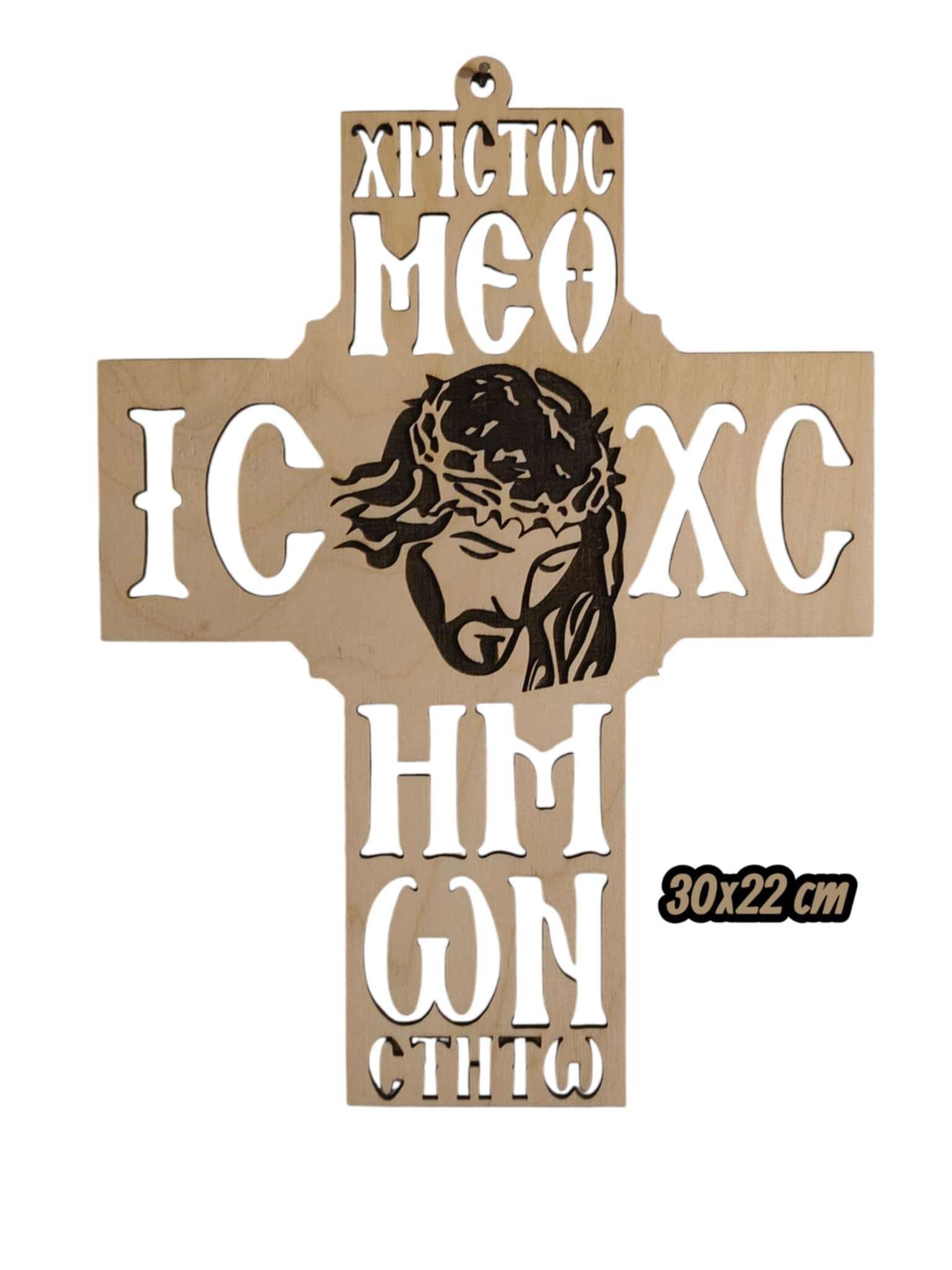 Κατασκευάζουμε ξύλινο διακοσμητικό σταυρό,που συμβολίζει την ελπίδα και τη γαλήνη.Κόβουμε το σχέδιο με μηχάνημα CNC υψηλής ακρίβειας και αποτυπώνουμε καλλιτεχνικά τον Χριστό με στεφάνι από αγκάθια, μαζί με την επιγραφή «ΧΡΙΣΤΟΣ ΜΕΘ’ ΗΜΩΝ».